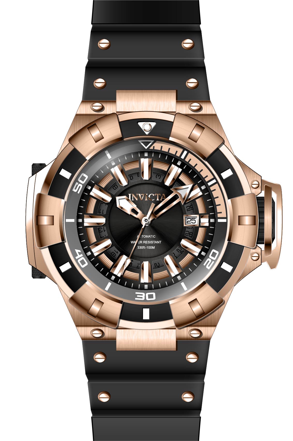 ["Akula","Automatic","Band_Size_30MM","Black","I31888","Invicta","Men","PF13018","Product_2019","Rose Gold","Stainless Steel","Stationary","Steel"]