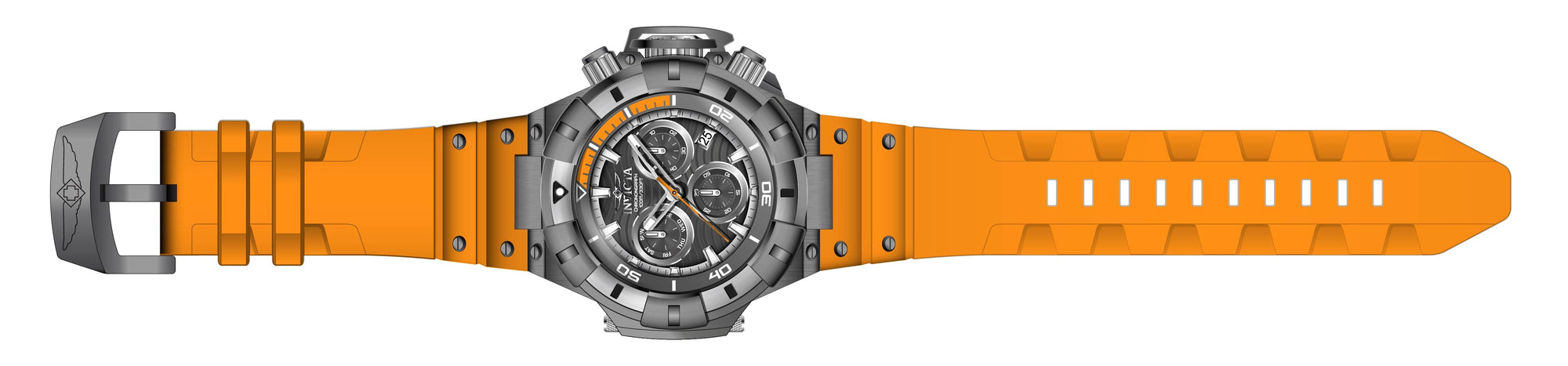 Band Material: Stainless Steel,Silicone, Band Tone: Gunmetal,Orange, Band Size [mm]: 30, Band Length [mm]: 210, Buckle Type: Buckle . Please note that bands do not ship with spring bars or T bars. If you need these parts, please add them to your cart with the corresponding part sku.