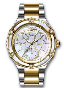 INVICTA Angel Lady 35mm Stainless Steel Silver White dial VH68 Quartz , Band Material: Stainless Steel, Band Tone: Steel,Gold, Band Size [mm]: 18, Band Length [mm]: 175, Buckle Type: Fold over push button , Crown Type : Push, Case Material : Stainless Steel, Case Tone : Silver, Case Size (mm) : 35, Case Back : Solid, Material of Hands : Metal, Color of Hands : White,Gold, Crystal Type : Flame Fusion, Bezel Material : Stainless Steel,Mother of Pearl, Dial Material : Mother of Pearl, Dial Color : White .Purchasing these parts and having a non-authorized repair center open your watch voids all manufacturing warranties. Invicta cannot guarantee the quality standards of an altered timepiece, the standard 3-year limited warranty on Invicta timepieces shall be invalid if the timepiece is serviced at any time by an unauthorized repair center. This includes battery replacements, which must be done at an Invicta authorized repair center in order to maintain the eligibility of the warranty. Please follow the link below to learn more about Invicta's warranty.https://cdn.invictawatch.com/www/files/invicta-warranty-2018.pdf