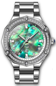 INVICTA Angel Lady 35mm Stainless Steel Silver Green dial PC22A Quartz , Band Material: Stainless Steel, Band Tone: Steel, Band Size [mm]: 18, Band Length [mm]: 175, Buckle Type: Fold over push button , Crown Type : Push, Case Material : Stainless Steel, Case Tone : Silver, Case Size (mm) : 35, Case Back : Solid, Material of Hands : Metal, Color of Hands : Silver, Crystal Type : Flame Fusion, Bezel Material : Stainless Steel, Dial Material : Abalone, Dial Color : Green .Purchasing these parts and having a non-authorized repair center open your watch voids all manufacturing warranties. Invicta cannot guarantee the quality standards of an altered timepiece, the standard 3-year limited warranty on Invicta timepieces shall be invalid if the timepiece is serviced at any time by an unauthorized repair center. This includes battery replacements, which must be done at an Invicta authorized repair center in order to maintain the eligibility of the warranty. Please follow the link below to learn more about Invicta's warranty.https://cdn.invictawatch.com/www/files/invicta-warranty-2018.pdf
