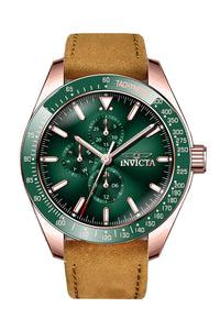 INVICTA Aviator Men 45mm Stainless Steel Rose Gold Green dial VH67 Quartz , Band Material: Leather, Band Tone: Brown, Band Size [mm]: 22, Band Length [mm]: 200, Buckle Type: Buckle , Crown Type : Push, Case Material : Stainless Steel, Case Tone : Rose Gold, Case Size (mm) : 45, Case Back : Solid, Material of Hands : Metal, Color of Hands : White,Rose Gold, Crystal Type : Flame Fusion, Bezel Material : Stainless Steel, Dial Material : Metal, Dial Color : Green, Dial Pattern : Sun-ray Finish .Purchasing these parts and having a non-authorized repair center open your watch voids all manufacturing warranties. Invicta cannot guarantee the quality standards of an altered timepiece, the standard 3-year limited warranty on Invicta timepieces shall be invalid if the timepiece is serviced at any time by an unauthorized repair center. This includes battery replacements, which must be done at an Invicta authorized repair center in order to maintain the eligibility of the warranty. Please follow the link below to learn more about Invicta's warranty.https://cdn.invictawatch.com/www/files/invicta-warranty-2018.pdf