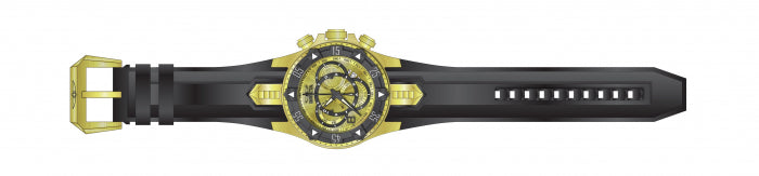 Band for Invicta Excursion 24276, Band Material: Silicone, Stainless Steel, Band Color: Black, Gold, Band Size (in mm): 26, Band Length (in mm): 210, Buckle Type: Regular, Clasp Type: Regular. Please note that bands do not ship with spring bars or T bars. If you need these parts, please add them to your cart with the corresponding part sku.