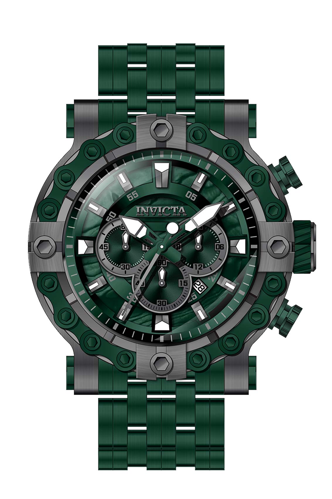 Band Material: Stainless Steel, Band Tone: Green, Band Size [mm]: 26, Band Length [mm]: 190, Buckle Type: Fold over safety . Please note that bands do not ship with spring bars or T bars. If you need these parts, please add them to your cart with the corresponding part sku.