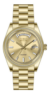 Band Material: Stainless Steel, Band Tone: Gold, Band Width: 20MM, Band Length: 174MM, Crown Type: Push, Case Material: Stainless Steel, Case Tone: Gold, Case Size [mm]: 38, Case Back: Solid, Material of Hands: Brass, Color of Hands: Gold, Crystal Type: Mineral, Bezel Material: Stainless Steel,Diamond, Dial Material: Brass, Dial Color: Gold, Dial Pattern: Sun-ray Finish .Purchasing these parts and having a non-authorized repair center open your watch voids all manufacturing warranties. Invicta cannot guarantee the quality standards of an altered timepiece, the standard 3-year limited warranty on Invicta timepieces shall be invalid if the timepiece is serviced at any time by an unauthorized repair center. This includes battery replacements, which must be done at an Invicta authorized repair center in order to maintain the eligibility of the warranty. Please follow the link below to learn more about Invicta's warranty.https://cdn.invictawatch.com/www/files/invicta-warranty-2018.pdf