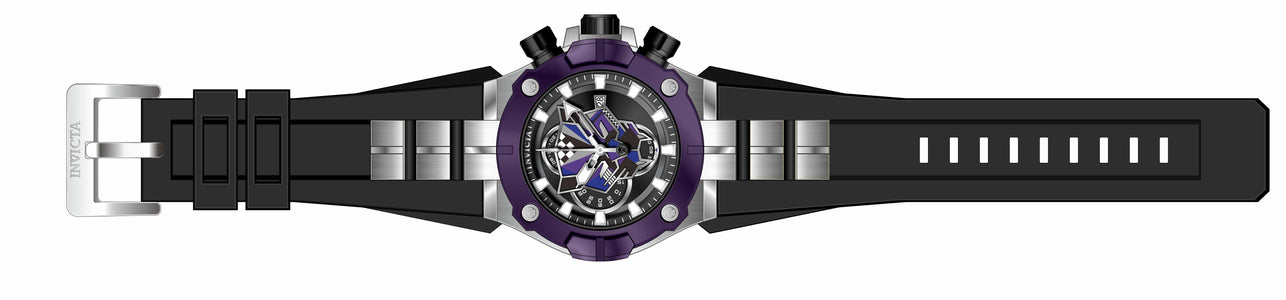 Band Material: Silicone, Band Tone: Black, Band Width: 31MM, Band Length: 205MM, Crown Type: Screw Down, Case Material: Stainless Steel, Case Tone: Purple, Steel, Black, Case Size [mm]: 52, Color of Hands: Silver, Luminous, Crystal Type: Flame Fusion, Bezel Material: Stainless Steel, Dial Material: Metal, Dial Color: Black .Purchasing these parts and having a non-authorized repair center open your watch voids all manufacturing warranties. Invicta cannot guarantee the quality standards of an altered timepiece, the standard 3-year limited warranty on Invicta timepieces shall be invalid if the timepiece is serviced at any time by an unauthorized repair center. This includes battery replacements, which must be done at an Invicta authorized repair center in order to maintain the eligibility of the warranty. Please follow the link below to learn more about Invicta's warranty.https://cdn.invictawatch.com/www/files/invicta-warranty-2018.pdf