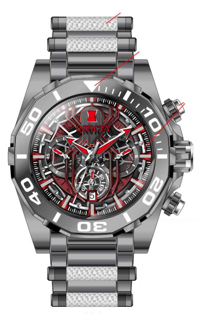 Band Material: Glass Fiber, Stainless Steel, Band Tone: Silver, Steel, Band Width: 32MM, Band Length: 190MM, Crown Type: Push, Case Material: Stainless Steel, Case Tone: Gunmetal, Case Size [mm]: 52, Color of Hands: Gunmetal, Red, Crystal Type: Flame Fusion, Bezel Material: Stainless Steel, Dial Material: Metal, Dial Color: Gunmetal, Red, Silver .Purchasing these parts and having a non-authorized repair center open your watch voids all manufacturing warranties. Invicta cannot guarantee the quality standards of an altered timepiece, the standard 3-year limited warranty on Invicta timepieces shall be invalid if the timepiece is serviced at any time by an unauthorized repair center. This includes battery replacements, which must be done at an Invicta authorized repair center in order to maintain the eligibility of the warranty. Please follow the link below to learn more about Invicta's warranty.https://cdn.invictawatch.com/www/files/invicta-warranty-2018.pdf