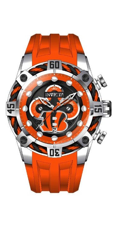 Band Material: Silicone, Band Tone: Orange, Band Width: 32MM, Band Length: 210MM, Crown Type: Push, Case Material: Stainless Steel, Case Tone: Silver, Case Size [mm]: 52, Color of Hands: Silver, White, Orange, Crystal Type: Flame Fusion, Bezel Material: Stainless Steel, Cable, Dial Material: Metal, Dial Color: White, Black, Orange .Purchasing these parts and having a non-authorized repair center open your watch voids all manufacturing warranties. Invicta cannot guarantee the quality standards of an altered timepiece, the standard 3-year limited warranty on Invicta timepieces shall be invalid if the timepiece is serviced at any time by an unauthorized repair center. This includes battery replacements, which must be done at an Invicta authorized repair center in order to maintain the eligibility of the warranty. Please follow the link below to learn more about Invicta's warranty.https://cdn.invictawatch.com/www/files/invicta-warranty-2018.pdf