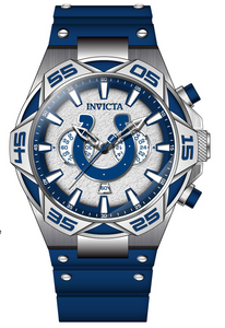 Band Material: Silicone, Stainless Steel, Band Tone: Blue, Steel, Band Width: 30MM, Band Length: 210MM, Crown Type: Push, Case Material: Stainless Steel, Case Tone: Silver, Case Size [mm]: 52, Color of Hands: Blue, Silver, White, Crystal Type: Flame Fusion, Bezel Material: Stainless Steel, Dial Material: Metal, Dial Color: Silver, White, Blue .Purchasing these parts and having a non-authorized repair center open your watch voids all manufacturing warranties. Invicta cannot guarantee the quality standards of an altered timepiece, the standard 3-year limited warranty on Invicta timepieces shall be invalid if the timepiece is serviced at any time by an unauthorized repair center. This includes battery replacements, which must be done at an Invicta authorized repair center in order to maintain the eligibility of the warranty. Please follow the link below to learn more about Invicta's warranty.https://cdn.invictawatch.com/www/files/invicta-warranty-2018.pdf