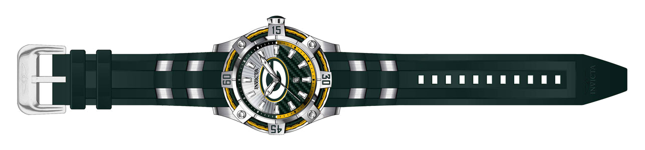 Band Material: Silicone, Stainless Steel, Band Tone: Green, Steel, Band Width: 26MM, Band Length: 210MM, Crown Type: Push, Case Material: Stainless Steel, Case Tone: Silver, Case Size [mm]: 52, Color of Hands: Silver, White, Crystal Type: Flame Fusion, Bezel Material: Cable, Stainless Steel, Dial Material: Glass Fiber, Metal, Dial Color: Green, Yellow, Silver, White .Purchasing these parts and having a non-authorized repair center open your watch voids all manufacturing warranties. Invicta cannot guarantee the quality standards of an altered timepiece, the standard 3-year limited warranty on Invicta timepieces shall be invalid if the timepiece is serviced at any time by an unauthorized repair center. This includes battery replacements, which must be done at an Invicta authorized repair center in order to maintain the eligibility of the warranty. Please follow the link below to learn more about Invicta's warranty.https://cdn.invictawatch.com/www/files/invicta-warranty-2018.pdf