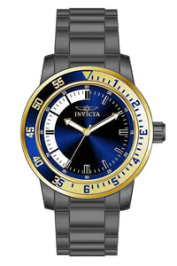 INVICTA Specialty Men 45mm Stainless Steel Gunmetal Blue dial PC21 Quartz , Band Material: Stainless Steel, Band Tone: Gunmetal, Band Size [mm]: 22, Band Length [mm]: 190, Buckle Type: Fold over safety , Crown Type : Push, Case Material : Stainless Steel, Case Tone : Gunmetal, Case Size (mm) : 45, Case Back : Solid, Material of Hands : Metal, Color of Hands : Gold, Crystal Type : Flame Fusion, Bezel Material : Stainless Steel, Dial Material : Metal, Dial Color : Blue, Dial Pattern : Sun-ray Finish .Purchasing these parts and having a non-authorized repair center open your watch voids all manufacturing warranties. Invicta cannot guarantee the quality standards of an altered timepiece, the standard 3-year limited warranty on Invicta timepieces shall be invalid if the timepiece is serviced at any time by an unauthorized repair center. This includes battery replacements, which must be done at an Invicta authorized repair center in order to maintain the eligibility of the warranty. Please follow the link below to learn more about Invicta's warranty.https://cdn.invictawatch.com/www/files/invicta-warranty-2018.pdf