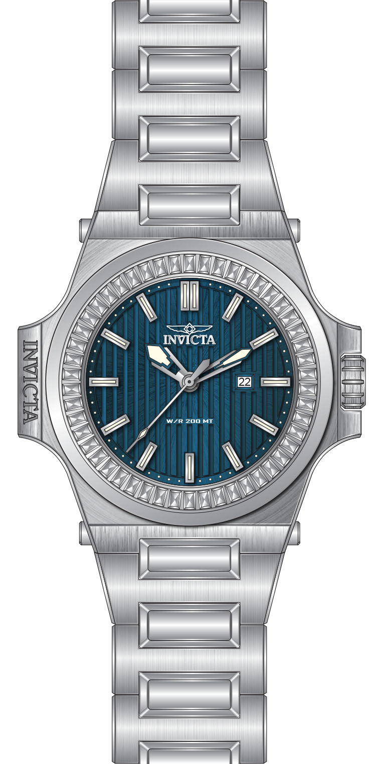 Band Material: Stainless Steel, Band Tone: Steel, Band Width: 32MM, Band Length: 210MM, Crown Type: Screw Down, Case Material: Stainless Steel,Crystal, Case Tone: White,Steel, Case Size [mm]: 58, Case Back: Solid, Material of Hands: Metal, Color of Hands: Silver,Blue,Luminous, Crystal Type: Mineral, Bezel Material: Stainless Steel,Crystal, Dial Material: Metal, Dial Color: Blue, Dial Pattern: Textured Pattern .Purchasing these parts and having a non-authorized repair center open your watch voids all manufacturing warranties. Invicta cannot guarantee the quality standards of an altered timepiece, the standard 3-year limited warranty on Invicta timepieces shall be invalid if the timepiece is serviced at any time by an unauthorized repair center. This includes battery replacements, which must be done at an Invicta authorized repair center in order to maintain the eligibility of the warranty. Please follow the link below to learn more about Invicta's warranty.https://cdn.invictawatch.com/www/files/invicta-warranty-2018.pdf