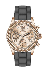 INVICTA Angel Lady 36mm Stainless Steel Rose Gold Rose Gold dial VD54 Quartz , Band Material: Silicone, Band Tone: Grey, Band Size [mm]: 18, Band Length [mm]: 195, Buckle Type: Buckle , Crown Type : Push, Case Material : Stainless Steel, Case Tone : Rose Gold, Case Size (mm) : 36, Case Back : Solid, Material of Hands : Metal, Color of Hands : White,Rose Gold, Crystal Type : Flame Fusion, Bezel Material : Stainless Steel, Dial Material : Metal, Dial Color : Rose Gold, Dial Pattern : Sun-ray Finish .Purchasing these parts and having a non-authorized repair center open your watch voids all manufacturing warranties. Invicta cannot guarantee the quality standards of an altered timepiece, the standard 3-year limited warranty on Invicta timepieces shall be invalid if the timepiece is serviced at any time by an unauthorized repair center. This includes battery replacements, which must be done at an Invicta authorized repair center in order to maintain the eligibility of the warranty. Please follow the link below to learn more about Invicta's warranty.https://cdn.invictawatch.com/www/files/invicta-warranty-2018.pdf