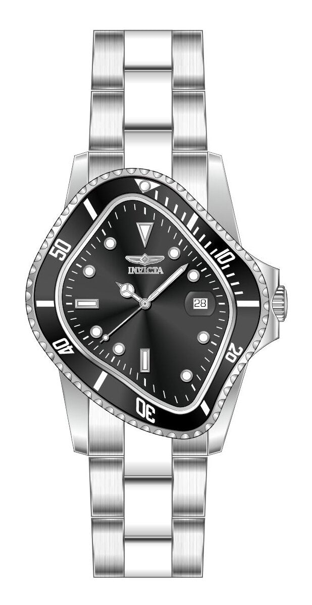 Band Material: Stainless Steel, Band Tone: Steel, Band Width: 20MM, Band Length: 180MM, Crown Type: Push, Case Material: Stainless Steel, Case Tone: Steel, Case Size [mm]: 40, Case Back: Solid screwed, Material of Hands: Brass, Color of Hands: Silver,Luminous, Crystal Type: Mineral, Bezel Material: Aluminum, Dial Material: Brass, Dial Color: Black, Dial Pattern: Sun-ray Finish .Purchasing these parts and having a non-authorized repair center open your watch voids all manufacturing warranties. Invicta cannot guarantee the quality standards of an altered timepiece, the standard 3-year limited warranty on Invicta timepieces shall be invalid if the timepiece is serviced at any time by an unauthorized repair center. This includes battery replacements, which must be done at an Invicta authorized repair center in order to maintain the eligibility of the warranty. Please follow the link below to learn more about Invicta's warranty.https://cdn.invictawatch.com/www/files/invicta-warranty-2018.pdf