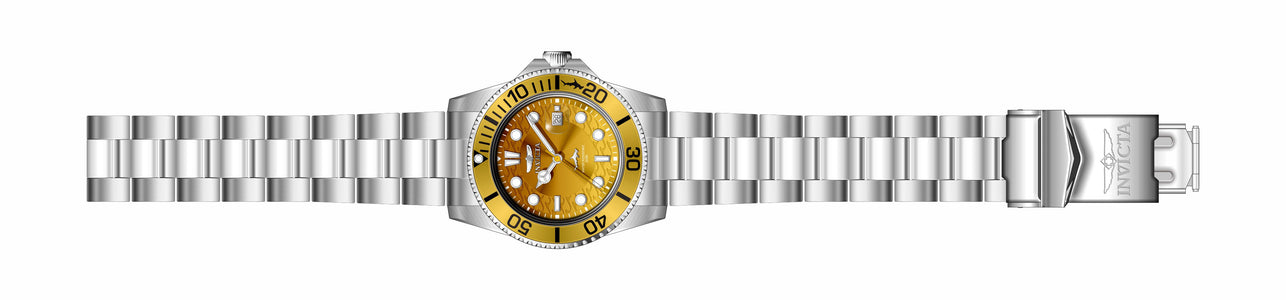 Band Material: Stainless Steel, Band Tone: Steel, Band Width: 22MM, Band Length: 210MM, Crown Type: Push, Case Material: Stainless Steel, Case Tone: Steel, Case Size [mm]: 42, Case Back: Solid, Material of Hands: Metal, Color of Hands: Silver,Luminous, Crystal Type: Mineral, Bezel Material: Stainless Steel, Dial Material: Metal, Dial Color: Yellow, Dial Pattern: Gradient Pattern .Purchasing these parts and having a non-authorized repair center open your watch voids all manufacturing warranties. Invicta cannot guarantee the quality standards of an altered timepiece, the standard 3-year limited warranty on Invicta timepieces shall be invalid if the timepiece is serviced at any time by an unauthorized repair center. This includes battery replacements, which must be done at an Invicta authorized repair center in order to maintain the eligibility of the warranty. Please follow the link below to learn more about Invicta's warranty.https://cdn.invictawatch.com/www/files/invicta-warranty-2018.pdf