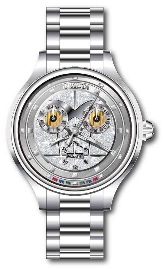 Band Material: Stainless Steel, Band Tone: Steel, Band Width: 16MM, Band Length: 190MM, Crown Type: Push, Case Material: Stainless Steel, Case Tone: Steel, Case Size [mm]: 38, Color of Hands: Silver, Crystal Type: Flame Fusion, Bezel Material: Stainless Steel, Dial Material: Glitter, Metal, Dial Color: Silver .Purchasing these parts and having a non-authorized repair center open your watch voids all manufacturing warranties. Invicta cannot guarantee the quality standards of an altered timepiece, the standard 3-year limited warranty on Invicta timepieces shall be invalid if the timepiece is serviced at any time by an unauthorized repair center. This includes battery replacements, which must be done at an Invicta authorized repair center in order to maintain the eligibility of the warranty. Please follow the link below to learn more about Invicta's warranty.https://cdn.invictawatch.com/www/files/invicta-warranty-2018.pdf