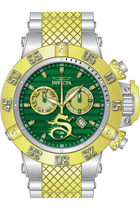 INVICTA Subaqua Men 56mm Stainless Steel Gold + Steel Gold+Green dial Z60 Quartz , Band Material: Stainless Steel, Band Tone: Steel,Gold, Band Size [mm]: 32.2, Band Length [mm]: 210, Buckle Type: Fold over safety , Crown Type : Screw Down, Case Material : Stainless Steel, Case Tone : Gold,Steel, Case Size (mm) : 56, Case Back : Solid, Material of Hands : Metal, Color of Hands : Gold,Luminous, Crystal Type : Mineral, Bezel Material : Stainless Steel, Dial Material : Metal, Dial Color : Gold,Green, Dial Pattern : Textured Pattern .Purchasing these parts and having a non-authorized repair center open your watch voids all manufacturing warranties. Invicta cannot guarantee the quality standards of an altered timepiece, the standard 3-year limited warranty on Invicta timepieces shall be invalid if the timepiece is serviced at any time by an unauthorized repair center. This includes battery replacements, which must be done at an Invicta authorized repair center in order to maintain the eligibility of the warranty. Please follow the link below to learn more about Invicta's warranty.https://cdn.invictawatch.com/www/files/invicta-warranty-2018.pdf